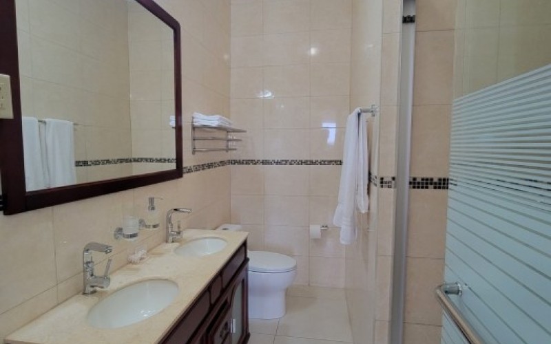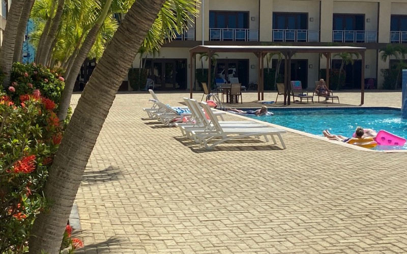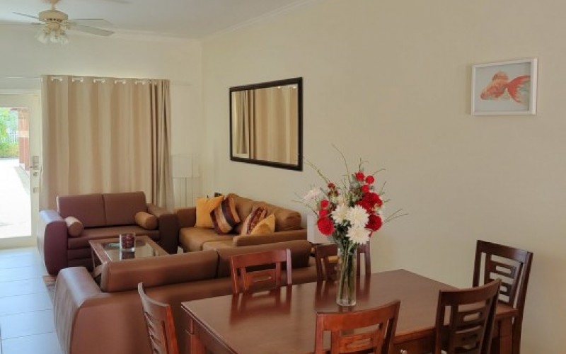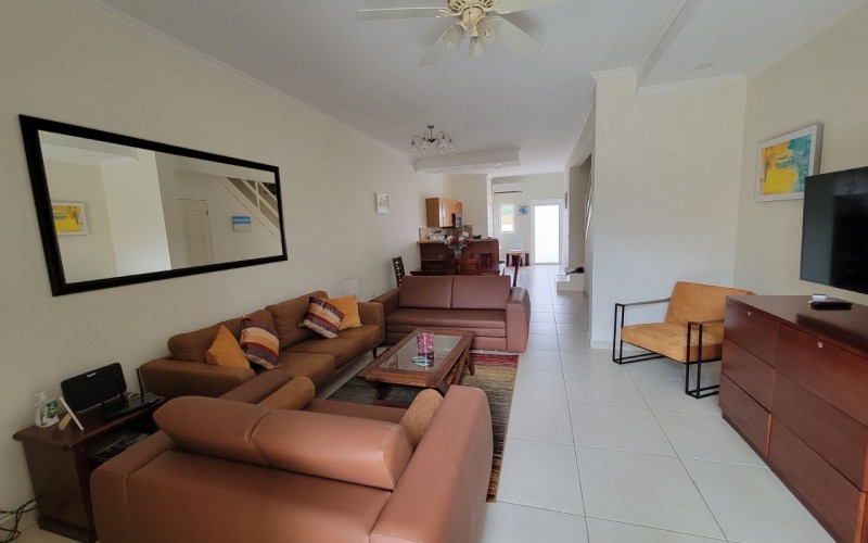 This well kept, fully furnished, spacious 2 story, 2 bedroom condo is just steps away from Eagle Beach rated one of the top beaches in the world. The air conditioned condo features 2.5 baths, 2 king size bedrooms each with their own private bathroom, fully furnished kitchen with a dishwasher, a washer/dryer, a dining area and living area with sofa bed. There is a safety deposit box in the master bedroom. There is a front and back patio downstairs and a private balcony upstairs adjacent to the master bedroom all with comfortable outdoors furniture. The property is gated, has 2 year round pools, free parking and wifi, 2 large grills which are next to a gazebo with tables. The condo is within walking distance to restaurants, a spa, grocery store, car rental and coffee shop. Maximum numbers of guests allowed to stay overnight in the unit is 6.