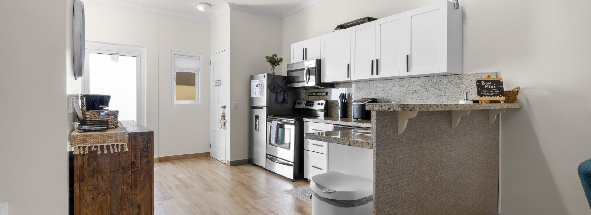 Upgraded, renovated kitchen with dishwasher, coffee bar, and all essentials