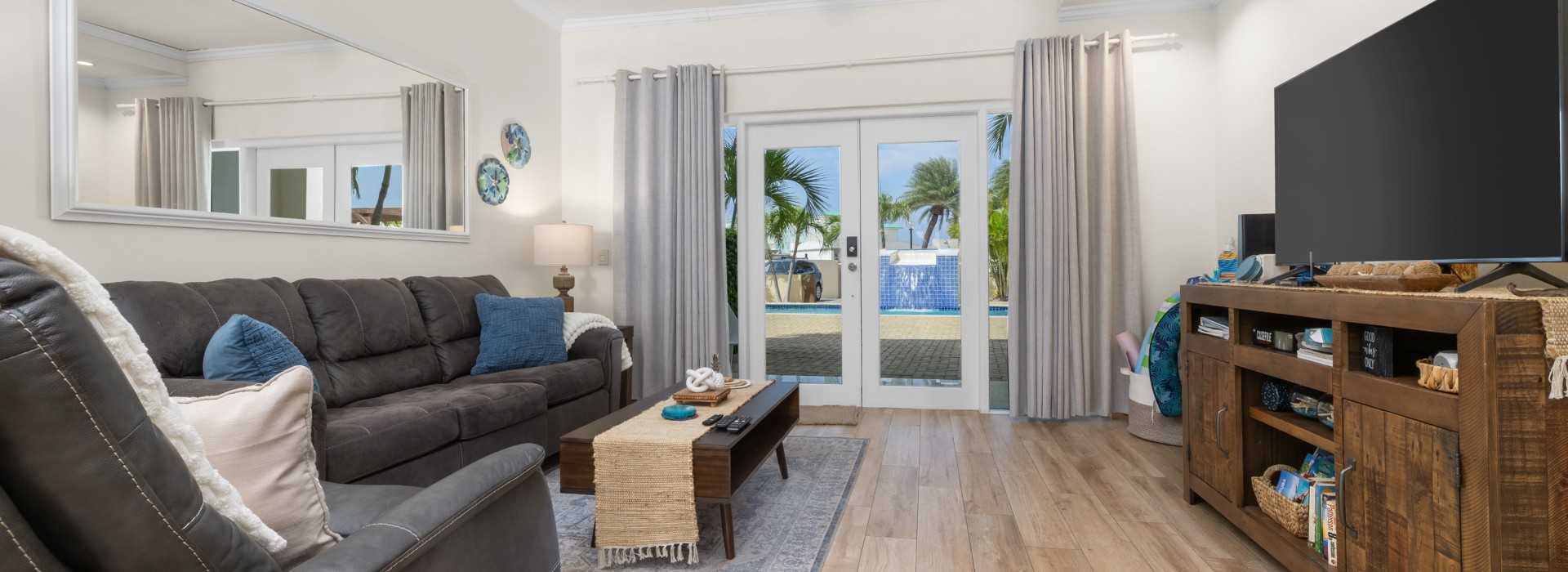 Welcome to Aruba Breeze C4, a bright and airy 2-bedroom, 2.5-bathroom, two-story townhome located poolfront, where the soothing sound of the waterfall sets the tone for your Caribbean escape. Just a short 4-minute walk to world-famous Eagle Beach, this home offers all the amenities you need for the perfect Aruba vacation.
