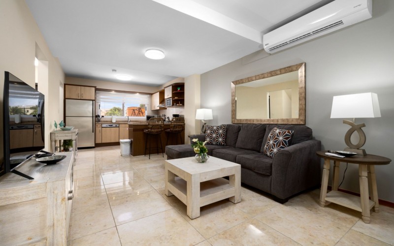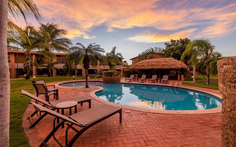 Surrounded by lush tropical landscapes, Jardines Del Mar offers a serene escape within walking distance to breathtaking Eagle Beach. Center stage at the property is a welcoming community pool surrounded by lounge chairs for sunning. A large shaded palapa area provides a serene space to relax and unwind, while the air-conditioned fitness center offer options for leisure and well-being. Jardines Del Mar is strategically located just one block east of Eagle Beach, recognized as one of the world's top 10 beaches. A short, 4-minute walk brings you to the pristine shores and crystal-clear waters, offering the best of both tranquility and convenience.