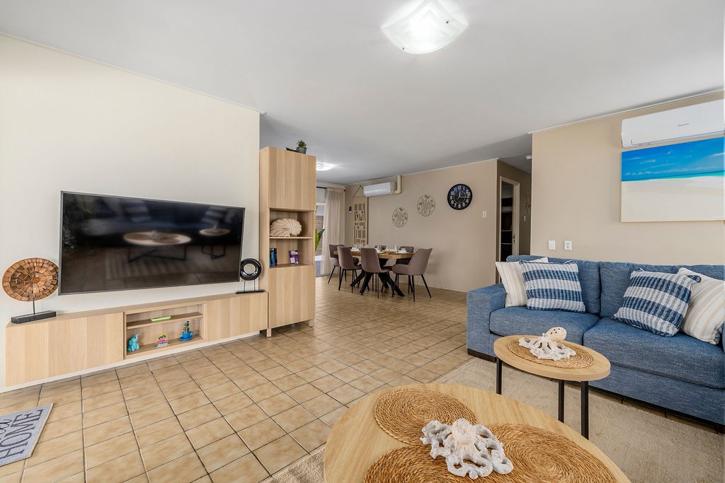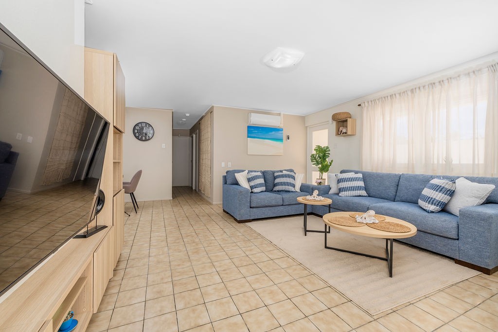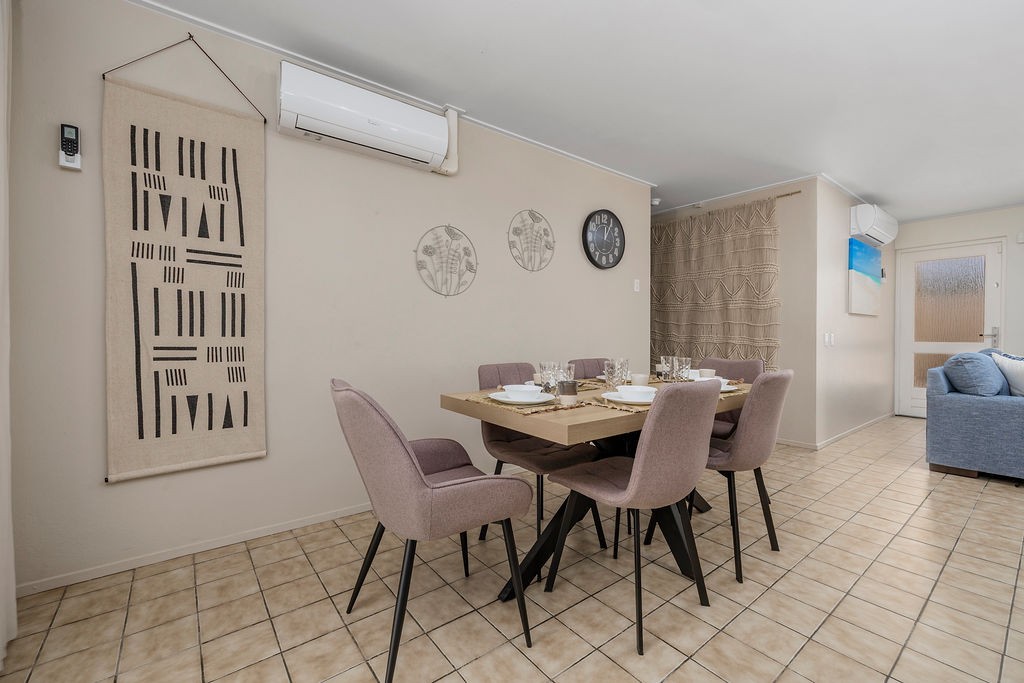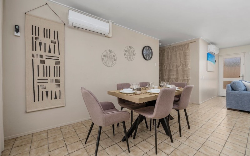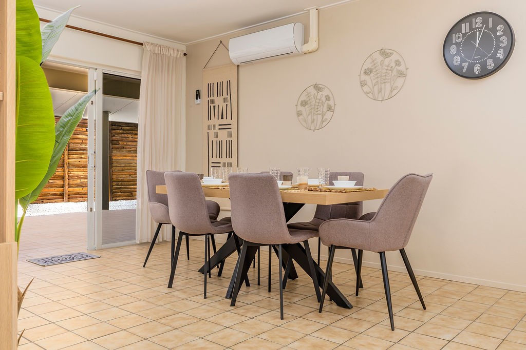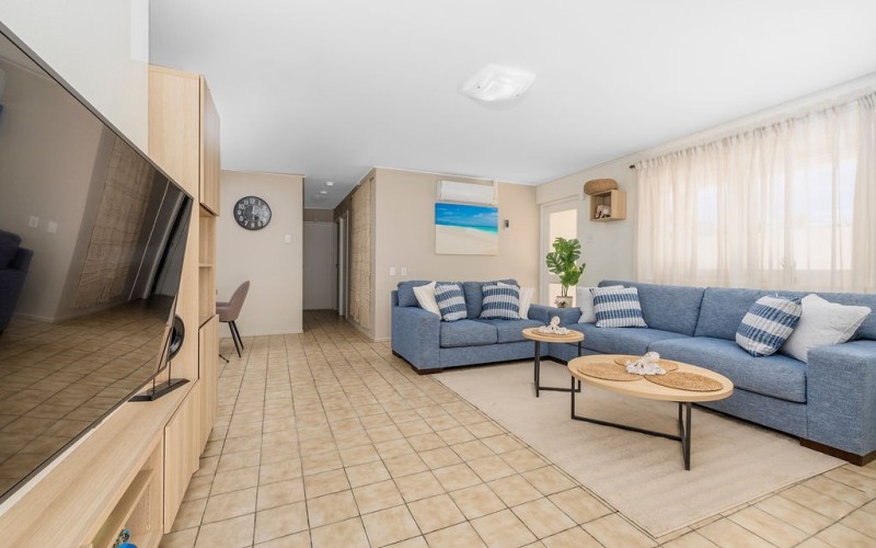 The primary bedroom suite features a California king bed complete with plush pillow top mattress, and a private ensuite bathroom for ultimate comfort and privacy. Two guest bedrooms share a full bathroom. Guest Bedroom 1 boosts a Queen bed perfect for stretching out after a full day of sunshine. Guest Bedroom 2 features Two single beds that can easily convert into a king to accommodate another couple or 2 singles.