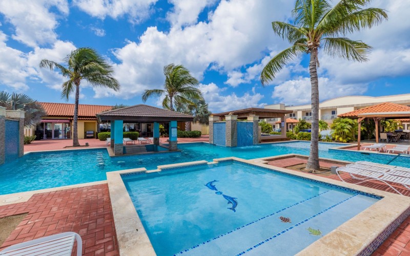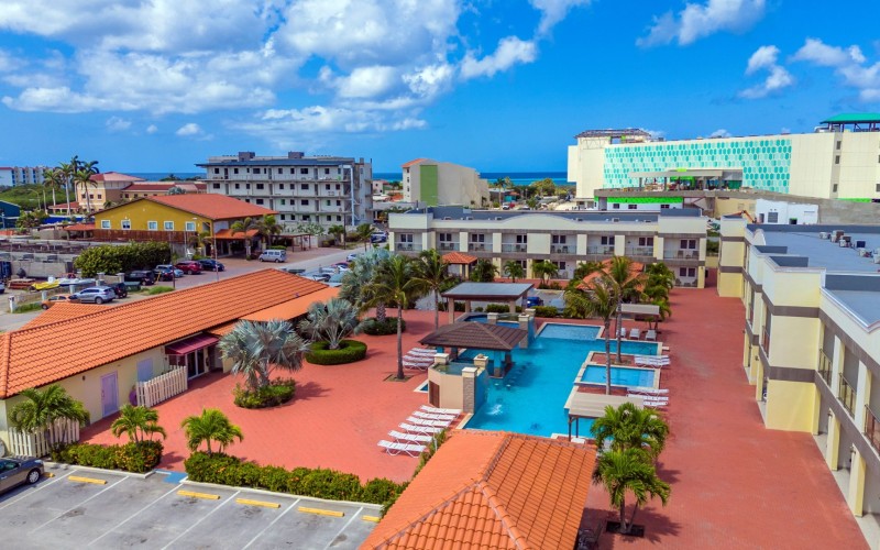 The Pearl Condominiums offers resort style amenities with family friendly rates. Walking distance to the stunning Eagle Beach.