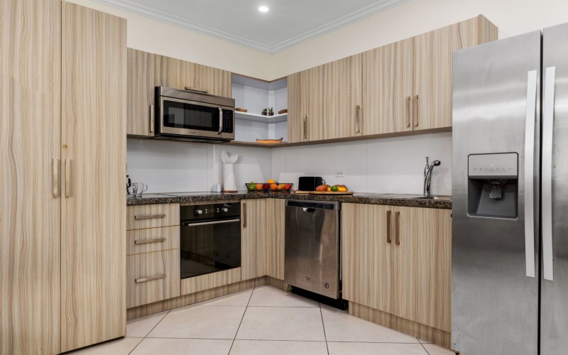 Enjoy ground floor accommodations steps from the pool at this 2 bedroom, 2 bathroom end unit. The primary bedroom suite features a king bed, smart TV & ensute bathroom. The guest room also features an ensuite bath, a queen bed, and smart TV. The open living space is perfect for family and friends to gather on the large sectional sofa, or enjoy a meal at the dining table, full kitchen complete with granite counter tops, a dishwasher, 4 burner stove top and oven. Enjoy drinks on your private patio area, or meet new friend under the shaded gazebo. The Pearl offers resort style amenities, BBQ area, Large pool with cascading water falls, a hot tub jacuzzi, and children's pool,