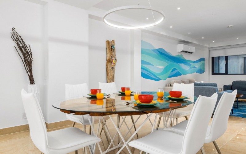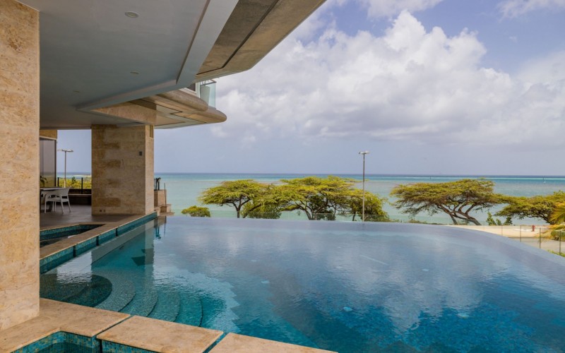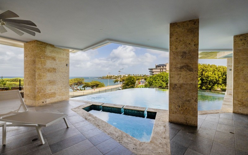 Step into a world of contemporary sophistication with this brand new modern luxury condo, seamlessly blending sleek, clean style with a touch of Caribbean flair. Marvel at the endless sea views that surround this chic downtown residence, offering an unparalleled living experience.