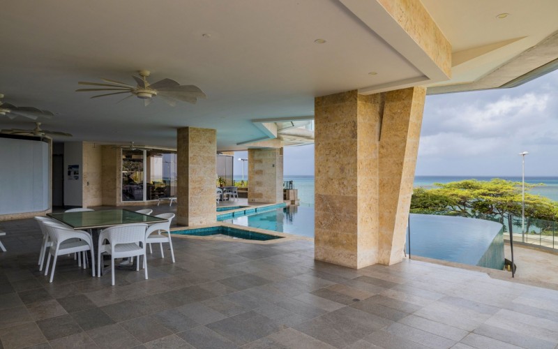 The condo boasts an open living space designed for comfort and style. With dining for six, a gourmet kitchen, and sleek furnishings, it's an ideal setting for gatherings and relaxation. Experience the luxury of two primary bedrooms, each featuring a king bed & private en suite bathroom. Elegant design and thoughtful touches enhance the overall sense of indulgence. Step onto the large covered patio to witness panoramic sea views and savor Aruba's breathtaking sunsets. This outdoor space serves as an extension of the living area, perfect for al fresco dining and relaxation.