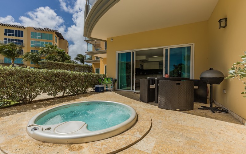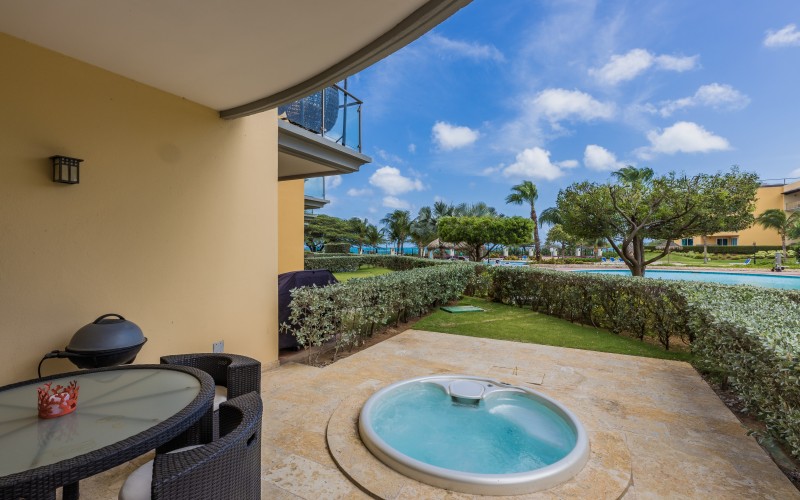 Positioned within Oceania Residences, this condo offers unrivaled access to the pristine Eagle Beach. Enjoy the convenience of stepping from your private patio directly onto the white sand and into the clear blue waters. Your private patio is a paradise of its own, featuring a jacuzzi and BBQ for your enjoyment. Experience seamless access to Oceania pools and the stunning Eagle Beach.
