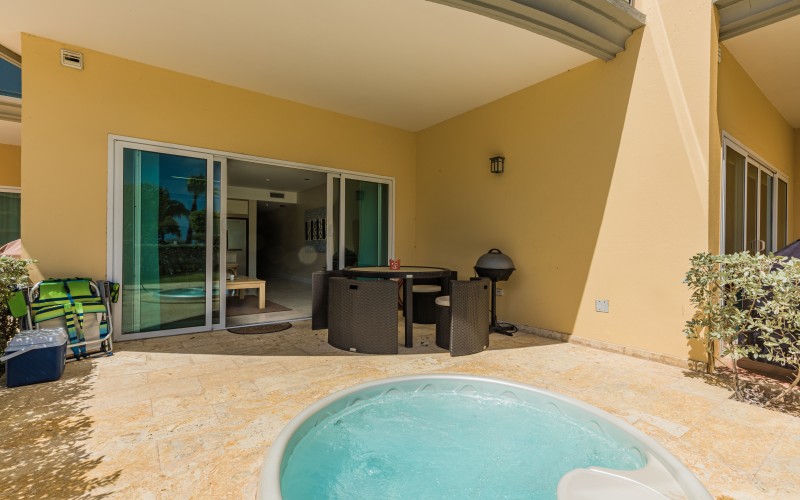 jaccuzi grill private patio sun lounges community pool |