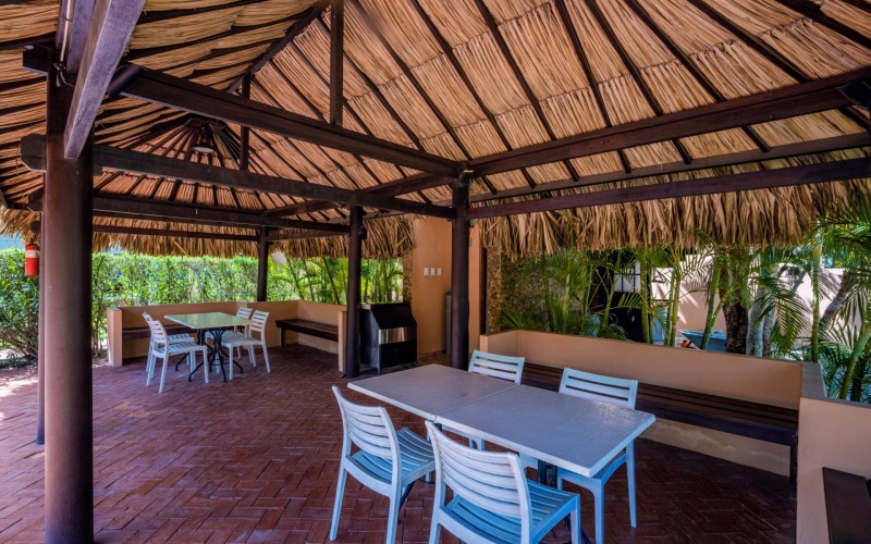 Center stage at this property is a welcoming community pool surrounded by lounge chairs for sunning. A large shaded palapa area provides a serene space to relax and unwind under the Caribbean sun. Explore the community party area for social gatherings and enjoy staying active in the air-conditioned fitness center, ensuring a perfect blend of leisure and well-being.
