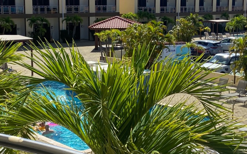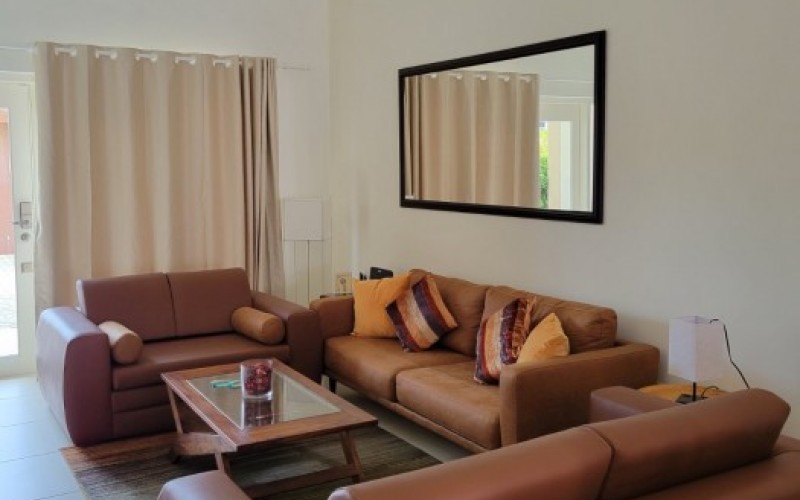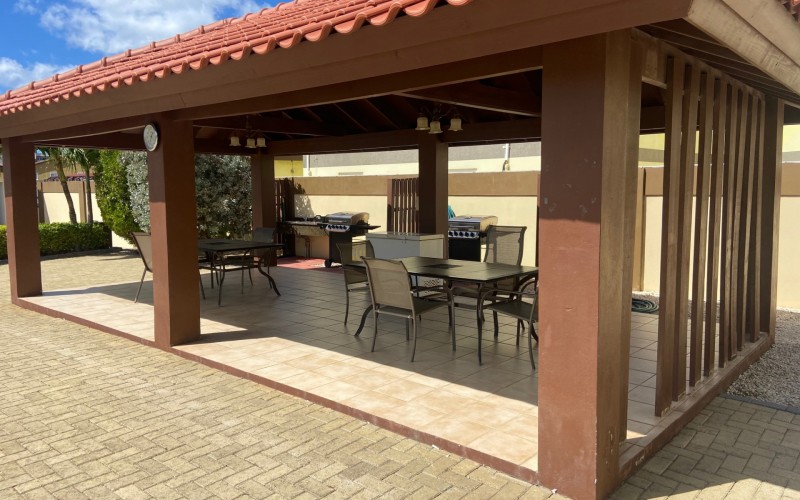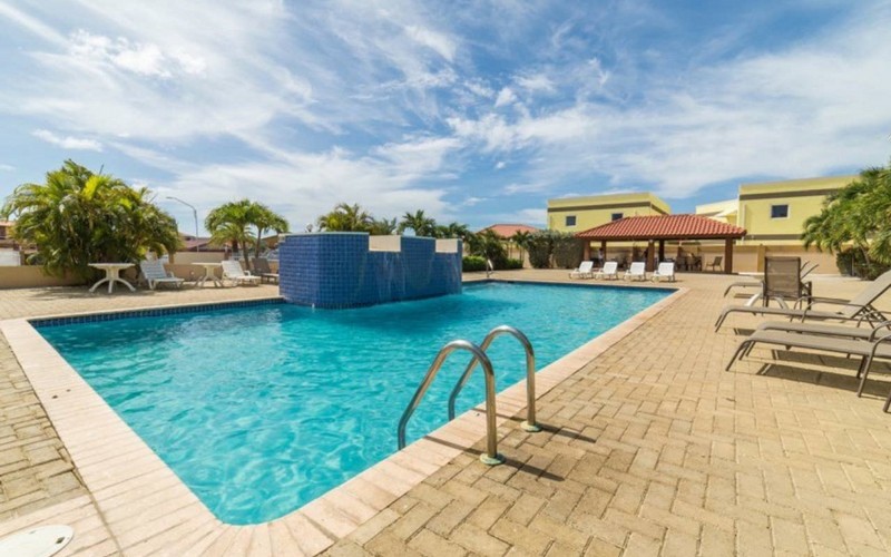 This well kept, fully furnished, spacious 2 story, 2 bedroom condo is just steps away from Eagle Beach rated one of the top beaches in the world. The air conditioned condo features 2.5 baths, 2 king size bedrooms each with their own private bathroom, fully furnished kitchen with a dishwasher, a washer/dryer, a dining area and living area with sofa bed. There is a safety deposit box in the master bedroom. There is a front and back patio downstairs and a private balcony upstairs adjacent to the master bedroom all with comfortable outdoors furniture. The property is gated, has 2 year round pools, free parking and wifi, 2 large grills which are next to a gazebo with tables. The condo is within walking distance to restaurants, a spa, grocery store, car rental and coffee shop. Maximum numbers of guests allowed to stay overnight in the unit is 6.