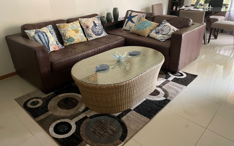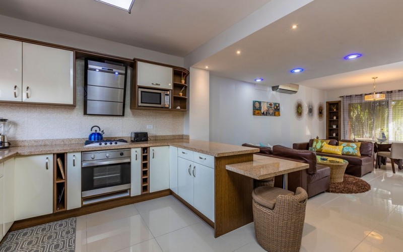 The large, open living space is designed for comfort and togetherness. Gather around the breakfast bar or dining table for family meals, unwind on comfortable sofas, and enjoy entertainment with a smart TV.