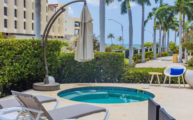 Immerse yourself in the beauty of the ocean from the moment you arrive. This ground floor condo offers unparalleled views of the azure waters, providing a sense of tranquility and serenity. Indulge in luxury with your own private plunge pool, perfect for refreshing dips on warm days. The outdoor kitchen allows for effortless entertaining, whether you're hosting a barbecue or enjoying cocktails by the pool.