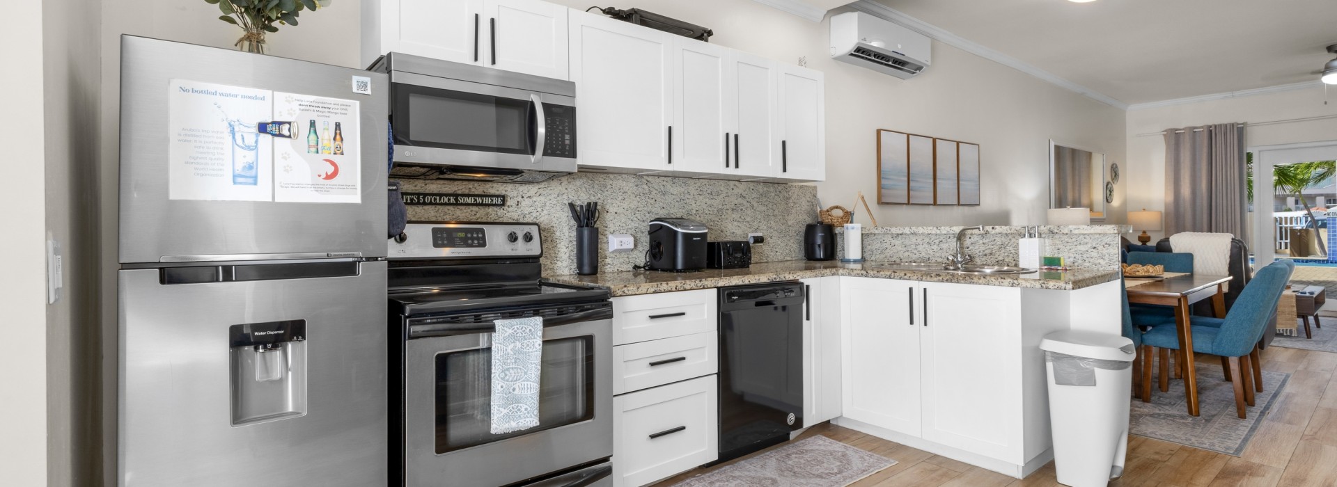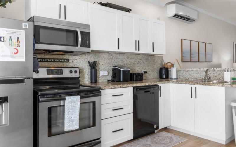 Upgraded, renovated kitchen with dishwasher, coffee bar, and all essentials