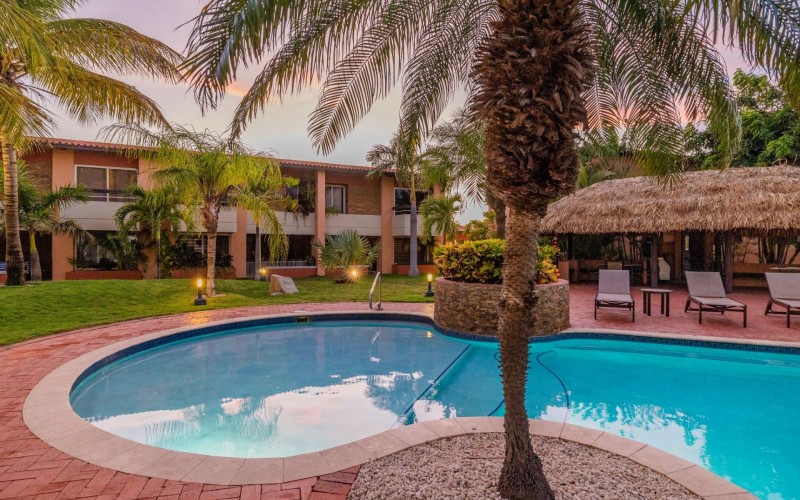 Surrounded by lush tropical landscapes, Jardines Del Mar offers a serene escape within walking distance to breathtaking Eagle Beach. Center stage at the property is a welcoming community pool surrounded by lounge chairs for sunning. A large shaded palapa area provides a serene space to relax and unwind, while the air-conditioned fitness center offer options for leisure and well-being. Jardines Del Mar is strategically located just one block east of Eagle Beach, recognized as one of the world's top 10 beaches. A short, 4-minute walk brings you to the pristine shores and crystal-clear waters, offering the best of both tranquility and convenience.