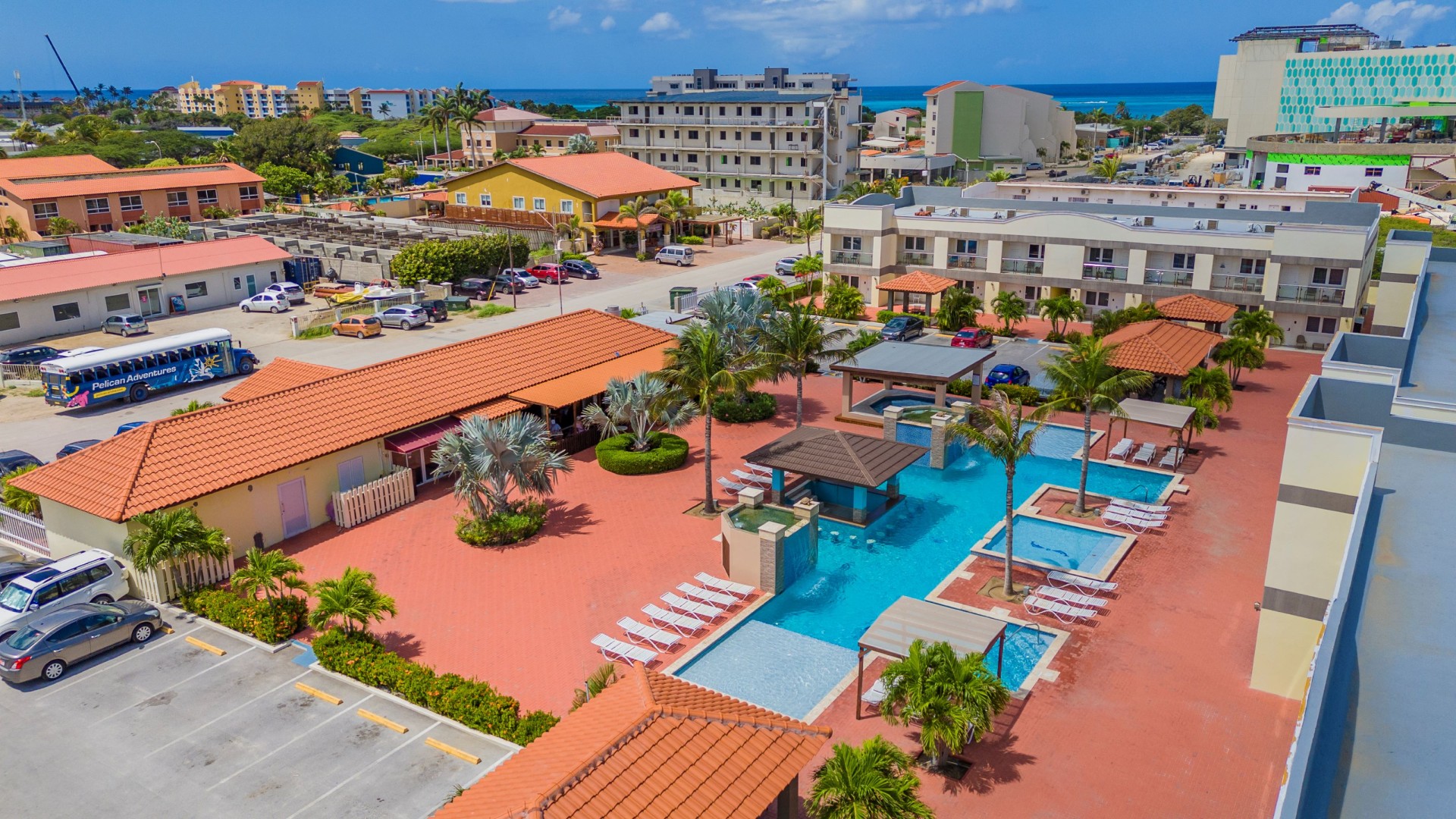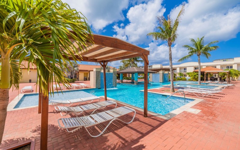 The Pearl Condominiums offers resort style amenities with family friendly rates. Walking distance to the stunning Eagle Beach.