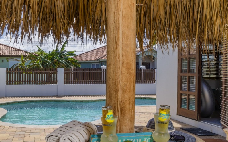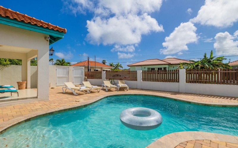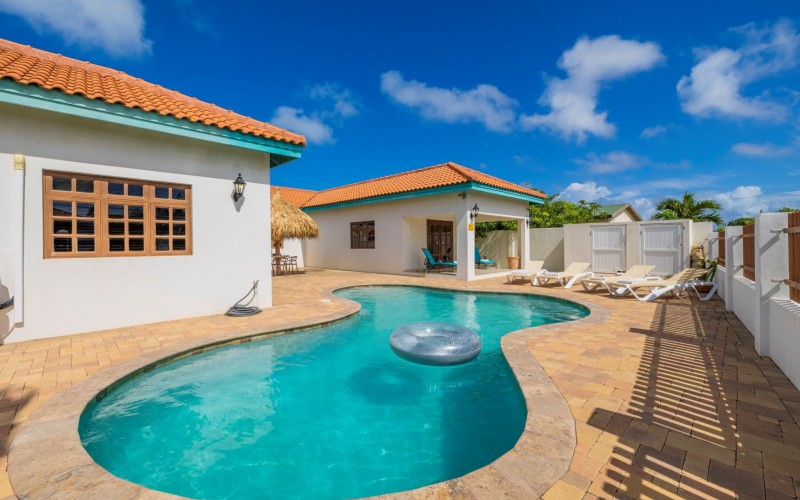 Nestled close to Eagle Beach and Super Foods, just 0.8 miles from the bustling high-rise hotel district, sits a beautiful U-shaped house that embraces the essence of island living. This enchanting retreat is perfect for large groups and extended families, offering not just a vacation home but an experience to cherish.
