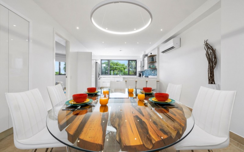 Step into a world of contemporary sophistication with this brand new modern luxury condo, seamlessly blending sleek, clean style with a touch of Caribbean flair. Marvel at the endless sea views that surround this chic downtown residence, offering an unparalleled living experience.
