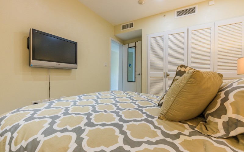 The open living area, adorned with a sleeper sofa for guests, seamlessly connects to your private patio. Bask in the sea breeze and embrace outdoor living. The kitchen boasts a breakfast bar, granite countertops, and stainless appliances, including a dishwasher. Retreat to the primary bedroom, adorned with a comfortable queen bed. Relax and unwind in a space designed for tranquility.