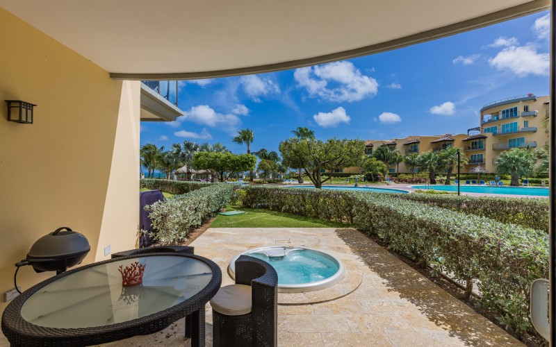 Positioned within Oceania Residences, this condo offers unrivaled access to the pristine Eagle Beach. Enjoy the convenience of stepping from your private patio directly onto the white sand and into the clear blue waters. Your private patio is a paradise of its own, featuring a jacuzzi and BBQ for your enjoyment. Experience seamless access to Oceania pools and the stunning Eagle Beach.