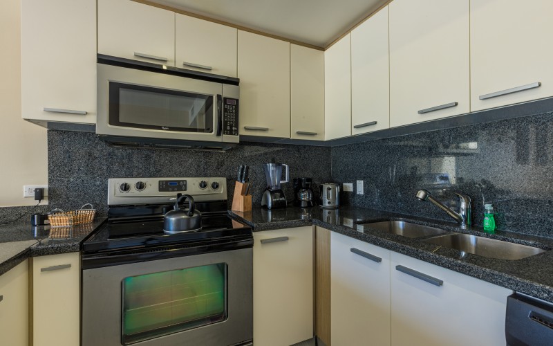 microwave blender ice maker cooking utensils oven coffee maker toaster dishwasher full kitchen granite countertops |