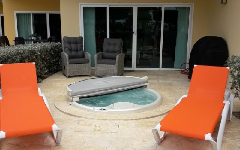 jaccuzi grill private patio sun lounges community pool |